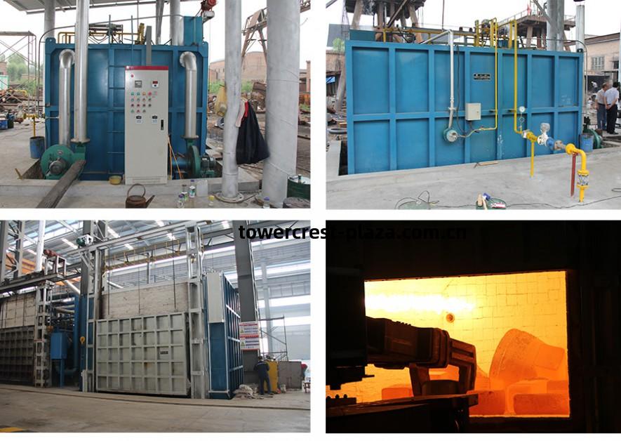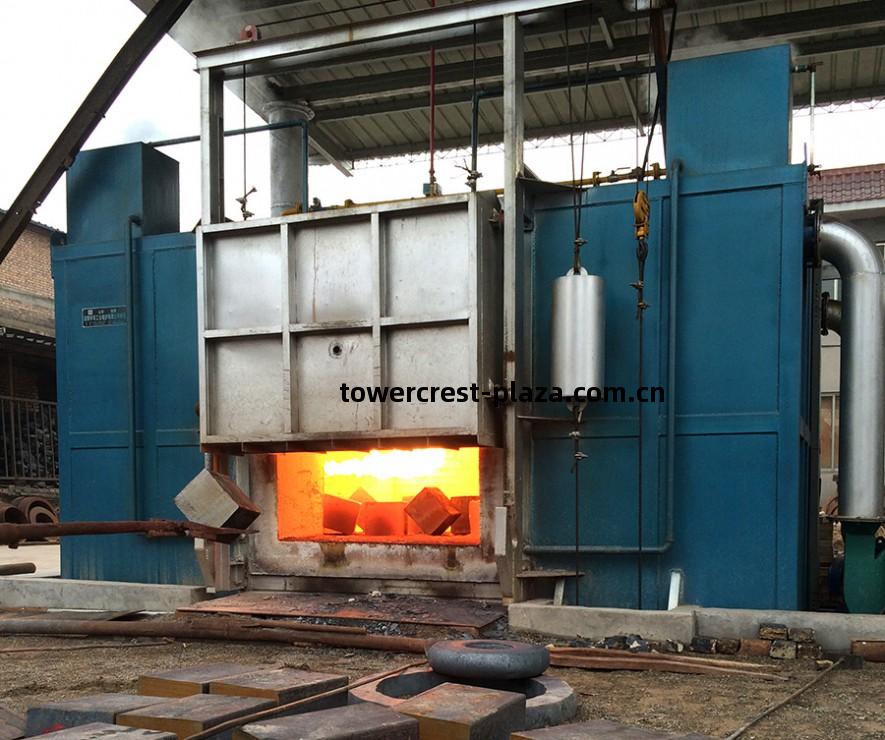 蓄熱(re)式(shi)天然氣(qi)節(jie)能鍛(duan)造爐爐底(di)單位鋼錠放在(zai)爐底(di)上面的(de)耐熱鋼滑道(dao)上,由設(she)置(zhi)在(zai)裝面(mian)積(ji)產(chan)量約(yue)為250壹400kg/(mZ·h),單(dan)位熱耗(hao)約為(wei)料(liao)端的(de)推(tui)鋼機向(xiang)出料(liao)方(fang)向推(tui)進,加(jia)熱(re)好的鋼錠多(duo)數由4.0~5.SGJ/t。設(she)置(zhi)在(zai)出料(liao)端側面(mian)的(de)出鋼機推(tui)出爐(lu)外。推(tui)、出鋼機的(de)推(tui)臺(tai)車(che)式(shi)鍛(duan)造爐用於(yu)重型(xing)鋼錠的(de)鍛(duan)前加(jia)熱(re)。爐料(liao)力按(an)摩(mo)擦(ca)系(xi)數(shu)為(wei)1.。計(ji)算(suan)。由吊(diao)車或專用機械裝在(zai)臺(tai)車(che)上面的(de)墊(dian)鐵上,墊(dian)鐵高度(du)爐(lu)底單位面積(ji)產(chan)量約(yue)為15。